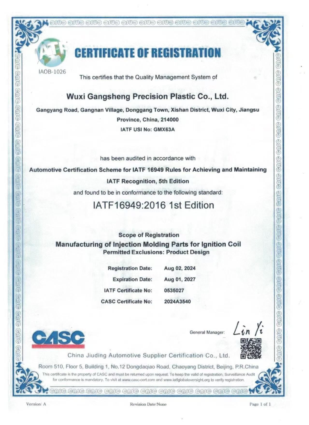 Wuxishi Gangsheng Precision Plastic Co., Ltd.